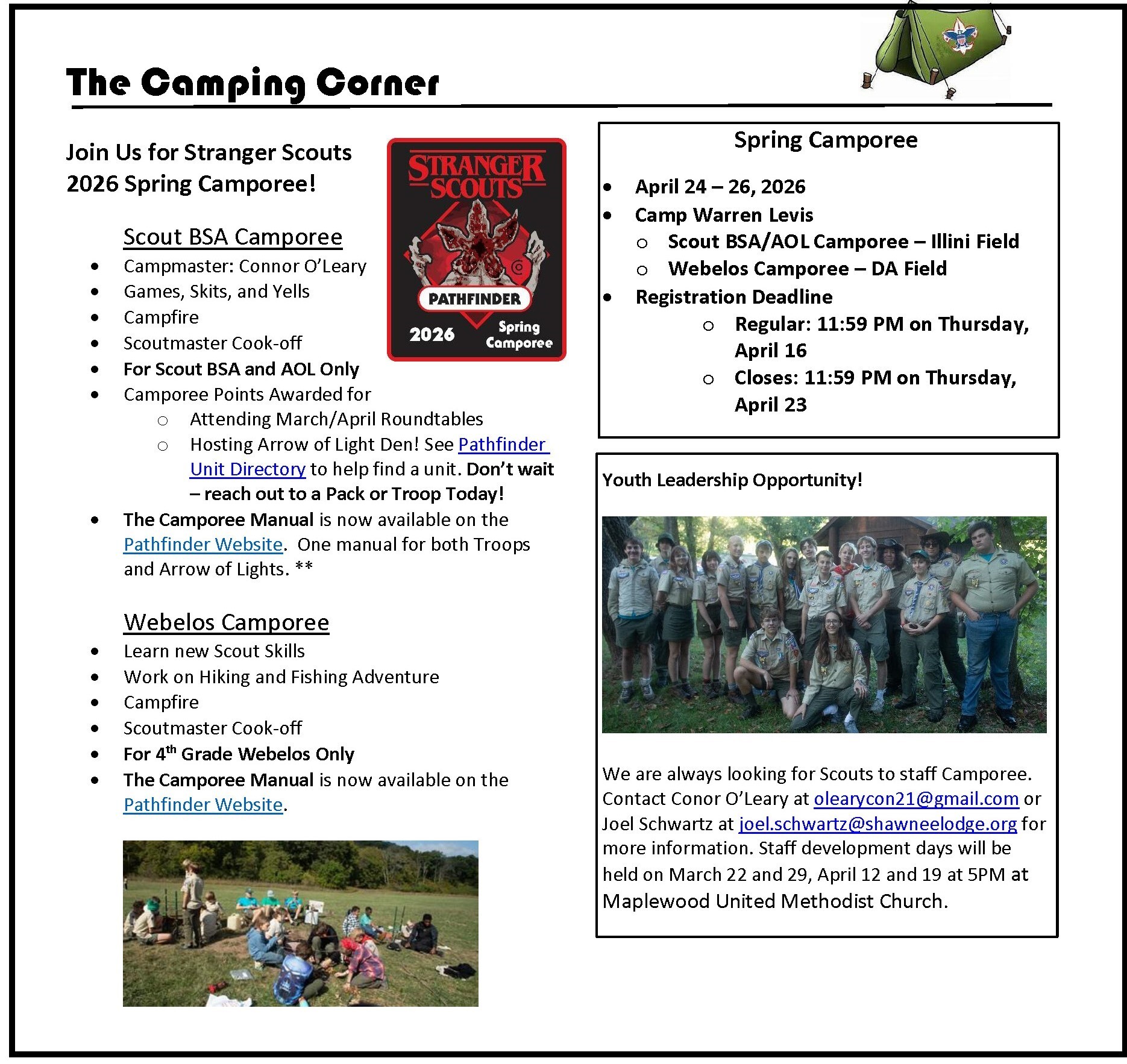 We will also have a board game social on March 29th from 3 – 5 pm at Maplewood United Methodist Church, 7409 Flora Ave in Maplewood. Bring a board game if you wish. Snacks will be provided. No sign up for this event – just bring an OA friend and join the fun. Candidates are welcome. After the social stay for the first Camporee staff meeting.