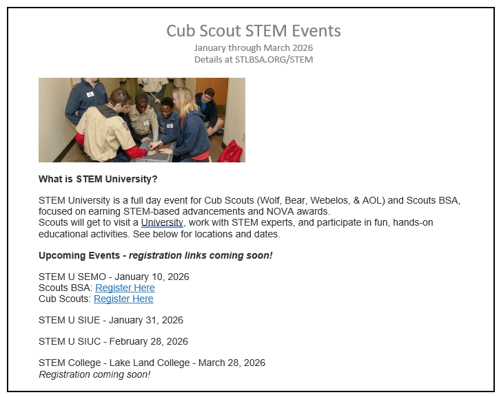 Food Bank Service Project โ We will be helping with the St. Louis Area Food Bank on February 21, 2026, for 8 am โ 10 am. Look for sign up soon.