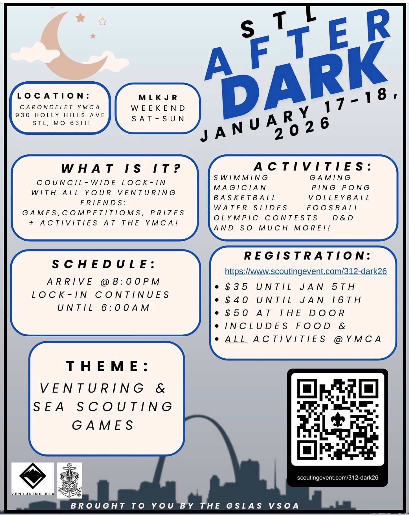 Pathfinder Ice Skating Social โ Join fellow Arrowman for an ice-skating social on January 4 from 2:30-4 pm at the Creve Coeur Ice Area. Arrive by 2:15 pm to get your skates before the session starts at 2:30 pm. Cost is $9 for skate rental and session fee. Donโt worry if you do not know how to skate, you will be in good company and have a great time.